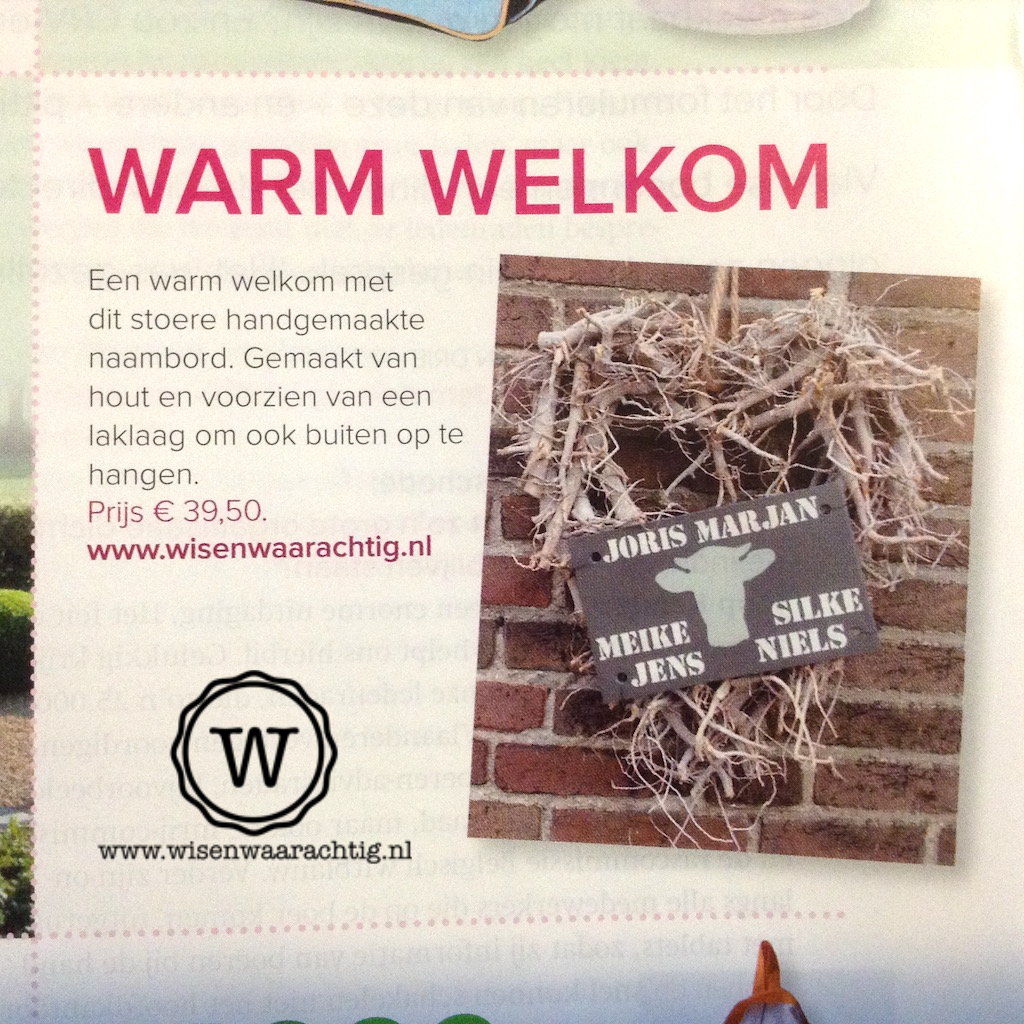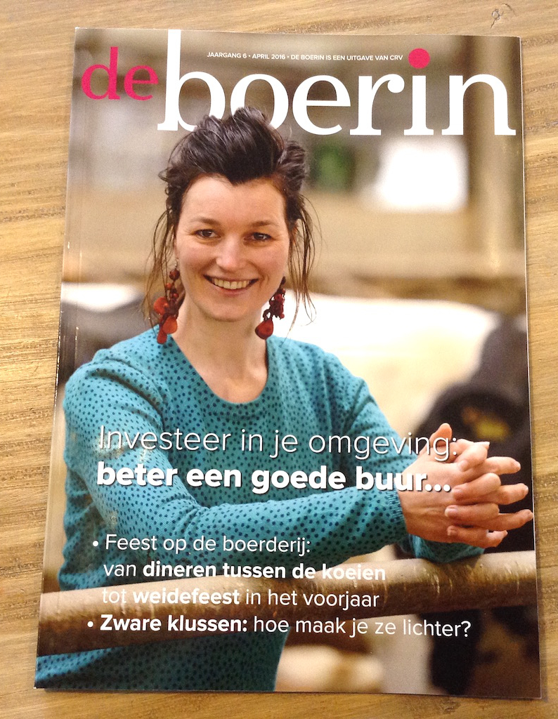 In de glossy voor boerinnen "De Boerin" mag het naambord koe natuurlijk niet ontbreken.