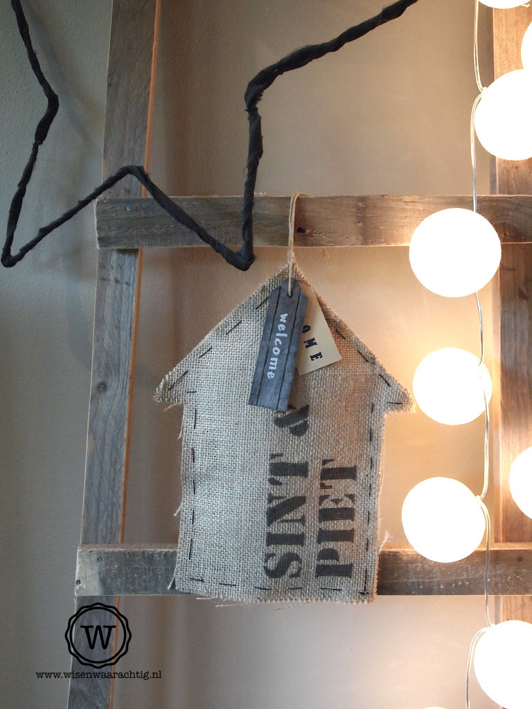 Het jute sint en piet huis is te zien in de Sinterklaasblog van Creatief met labels en lint.